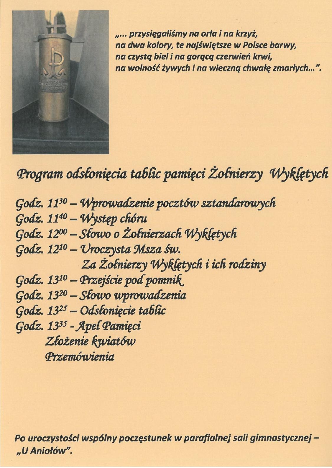 Program odsłonięcia tablic pamięci Żołnierzy Niezłomnych 5 marca w Morawicy