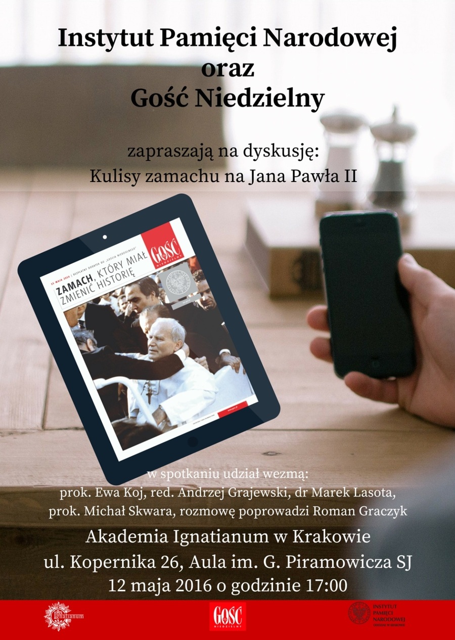 Instytut Pamięci Narodowej, „Gość Niedzielny” oraz Akademia Ignatianum w Krakowie zapraszają na dyskusję z udziałem prok. Ewy Koj, red. Andrzeja Grajewskiego, dr. Marka Lasoty i prok. Michała Skwary. Prowadzenie Roman Graczyk.
