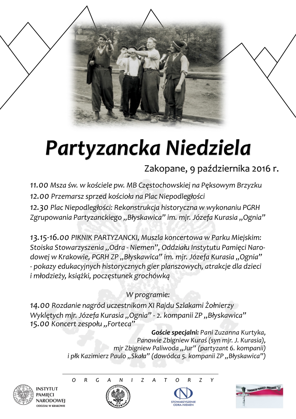 Organizatorami wydarzeń jej towarzyszących są: Stowarzyszenie „Odra – Niemen”, Podhalańska Grupa Rekonstrukcji Historycznej Zgrupowania Partyzanckiego „Błyskawica”, Fundacja „Pamięć i Wolność” w Waksmundzie oraz Instytut Pamięci Narodowej Oddział w Krakowie.