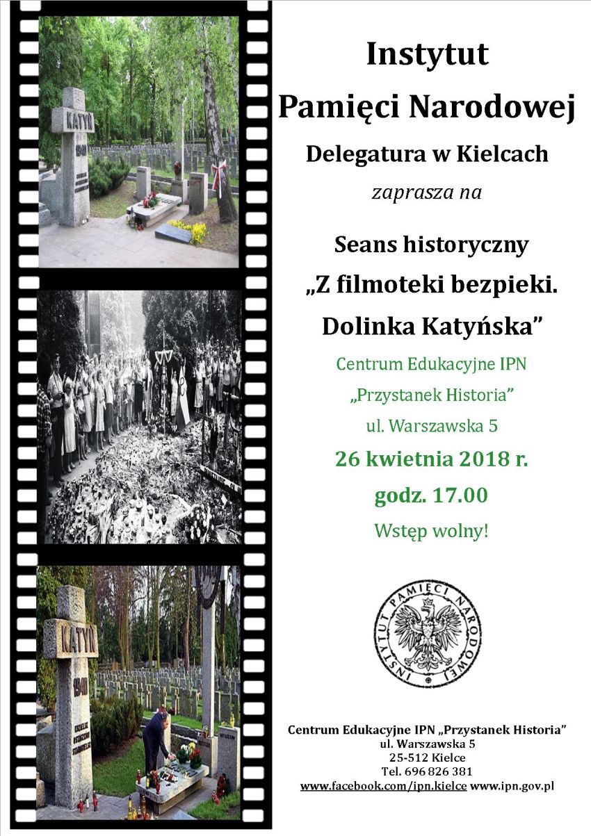 Projekcja filmu dokumentalnego „Z filmoteki bezpieki. Dolinka Katyńska” – Przystanek Historia IPN w Kielcach, 26 kwietnia