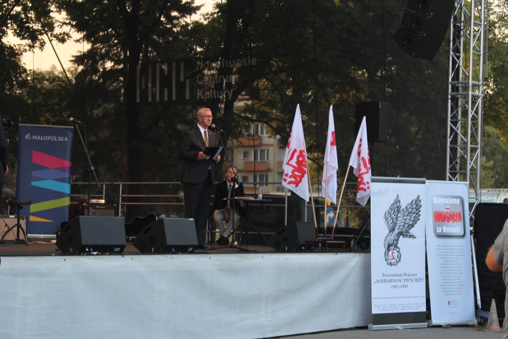 Podpisanie Porozumień Sierpniowych w 1980 r. wyznaczyło w Polsce nową drogę do wolności i solidarności. To także symboliczny dzień powstania „Solidarności”. Dr Michał Wenklar, Naczelnik Oddziałowego Biura Badań Historycznych IPN w Krakowie w krótkim wystąpieniu do zebranych, przypominał że „to w komitetach rewolucyjnych, a potem w lokalnych komitetach Solidarności, można się było upominać o naprawienie doznanych osobiście krzywd, o interwencję w zakładzie pracy czy lokalnej administracji. Tam można było uzyskać realną pomoc – społeczeństwo miało w końcu reprezentanta swoich interesów, który był w stanie negocjować z formalną władzą, wymagać od niej, rozliczać z podjętych zobowiązań. Zapoczątkowana w sierpniu dekada stanowiła przedłużoną agonię systemu komunistycznego. Przyspieszył jej kres rok 1988 – kilka miesięcy temu obchodziliśmy równą, 30. rocznicę strajków, w tym zwłaszcza strajku nowohuckiego, które na nowo zmusiły władzę do negocjacji, ustępstw, doprowadzając w końcu do przemian 1989 i 1990 roku”.
