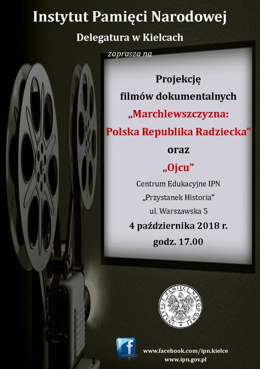 4 października 2018 r. (godz. 17) na kieleckim „Przystanku Historia” odbędzie się prelekcja oraz pokaz dwóch filmów dokumentalnych: „Marchlewszczyzna: Polska Republika Radziecka” w reż. Grzegorza Górnego i Rafała Smoczyńskiego oraz krótkometrażowego obrazu fabularnego Liliany Komorowskiej i Diany Skayi pt. „Ojcu”. Materiał powstał w Kanadzie na podstawie wspomnień Aliny Bandrowskiej, córki Adama Bandrowskiego, zamordowanego w Winnicy podczas operacji polskiej NKWD.