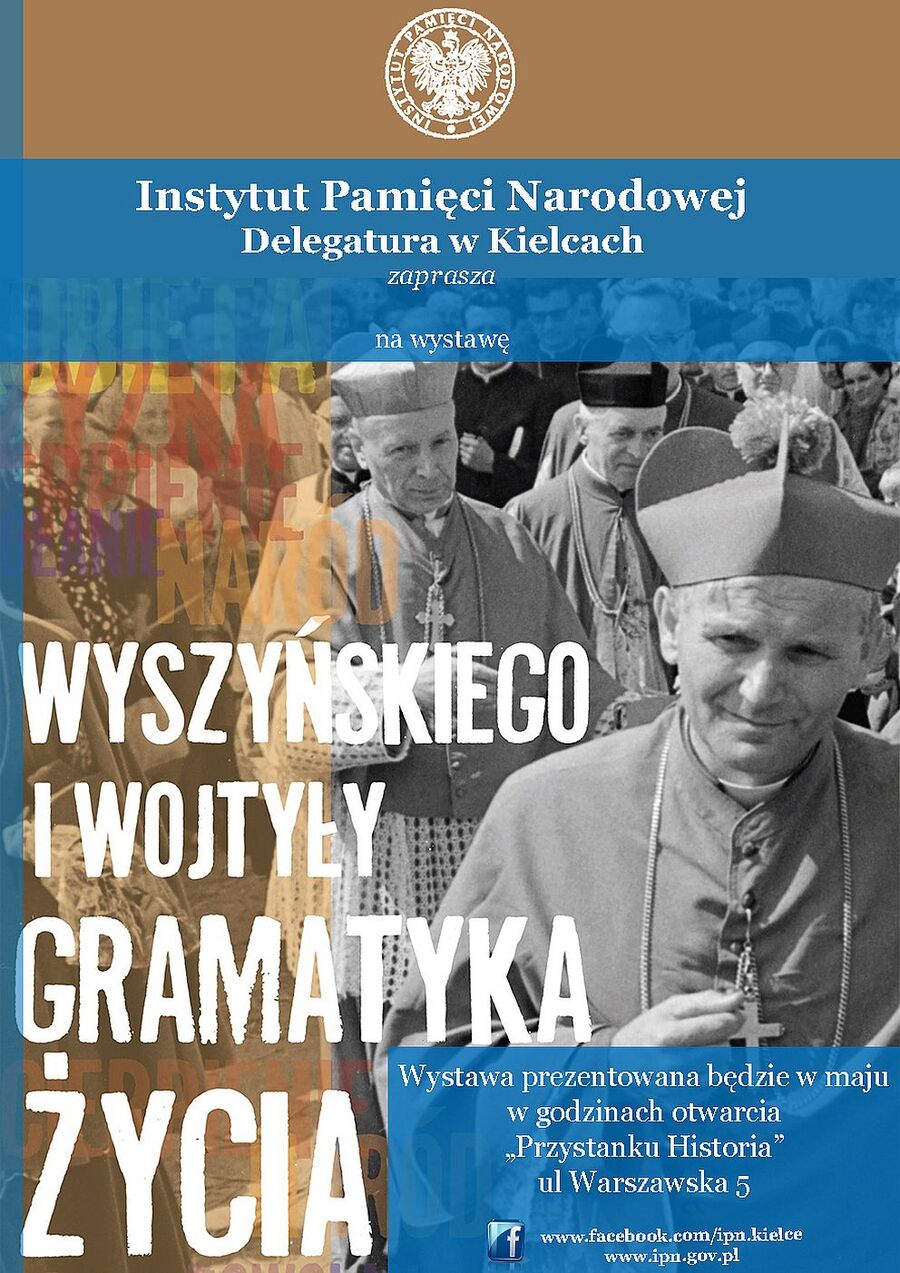 Wystawa „Wyszyńskiego i Wojtyły gramatyka życia” poświęcona jest działalności i dorobkowi dwóch wielkich postaci polskiego Kościoła. Składa się głównie ze zdjęć archiwalnych i cytatów, dotyczących życia Karola Wojtyły i Stefana Wyszyńskiego. Kluczem do wystawy jest katalog podstawowych wartości będących filarami życia człowieka. Na nich opiera się „gramatyka życia”, podstawa funkcjonowania nie tylko jednostek, ale i społeczności, rodzin, wspólnot i narodów. Z tekstów autorstwa Wyszyńskiego i Wojtyły, często trudnych, wymagających, hermetycznych, wydobyto ich esencję. Wybrane cytaty pokazują podejście dwóch wielkich Polaków do podstawowych dla wszystkich pojęć. Są wskazówkami i przestrogami, jakie kard. Wyszyński i Jan Paweł II pozostawili Polakom na czas wytyczania naszej dalszej historii już bez ich bezpośredniej pomocy. Wystawa została przygotowana przez Instytut Pamięci Narodowej.