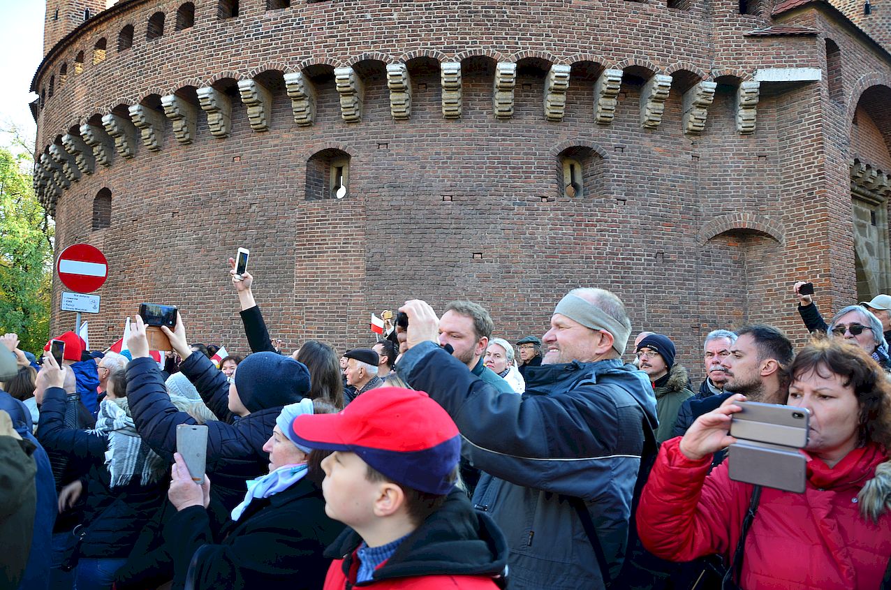 Rano, w 101. rocznicę odrodzenia RP, złożono kwiaty przy pomniku Żołnierzy Polski Walczącej na Powiślu. Po mszy świętej w intencji Ojczyzny, odprawionej w katedrze wawelskiej przez metropolitę krakowskiego abp. Marka Jędraszewskiego, zebrani zaśpiewali wspólnie hymn państwowy. Następnie patriotyczny pochód podążył pod Krzyż Katyński na pl. o. Studzińskiego, gdzie złożono kwiaty.