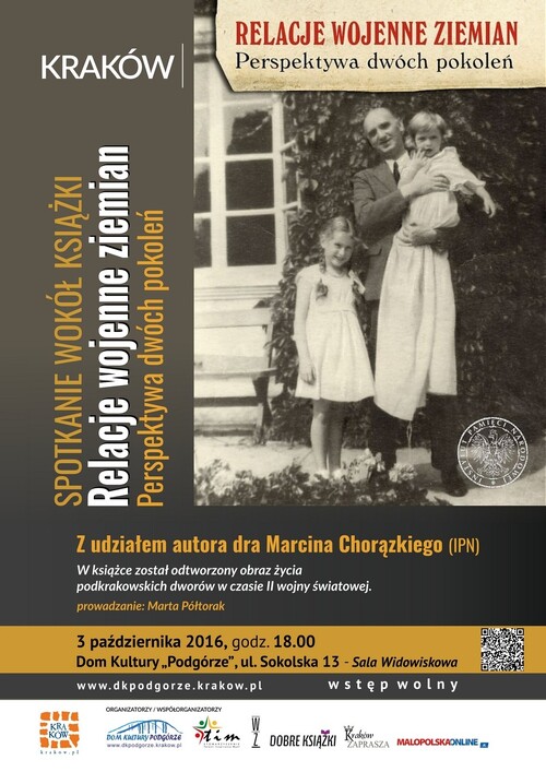 03/10/2016Spotkanie z dr. Marcinem Chorązkim autorem książki "Relacje wojenne ziemian. Perspektywa dwóch pokoleń" - Kraków, 3 października 2016