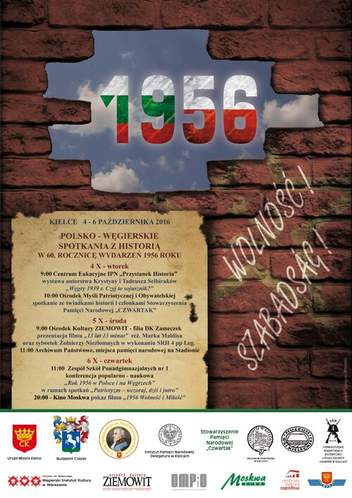 03/10/2016„Polsko-węgierskie spotkania z historią” w 60. rocznicę wydarzeń 1956 roku: wizyta młodzieży z Budapesztu i Kielc w Centrum Edukacyjnym IPN „Przystanek Historia” oraz konferencja „Rok 1956 w Polsce i na Węgrzech” – Kielce, 3–6 października 2016