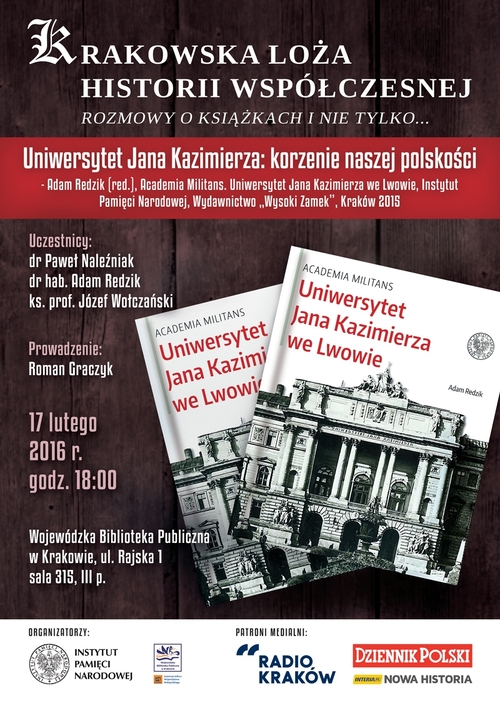 17/02/2016„Uniwersytet Jana Kazimierza: korzenie naszej polskości” – spotkanie z cyklu „Krakowska Loża Historii Współczesnej” – Kraków, 17 lutego 2016