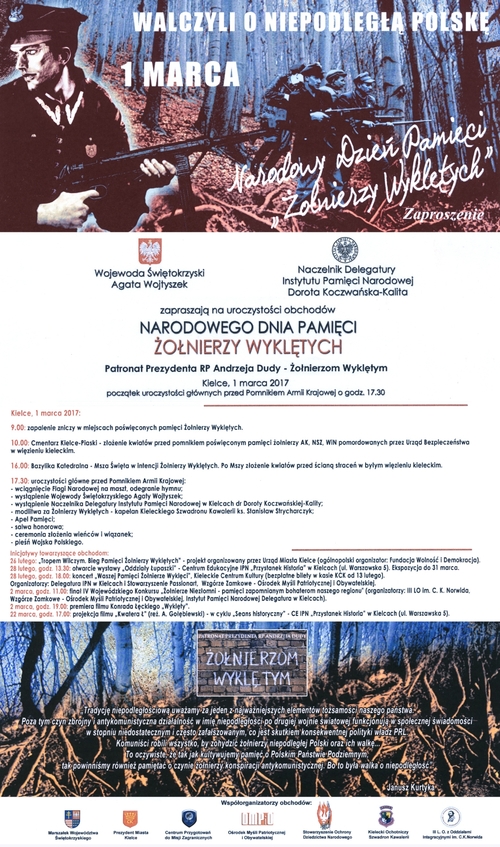 01/03/2017Program Obchodów Narodowego Dnia Pamięci Żołnierzy Wyklętych w Kielcach - 1 marca 2017