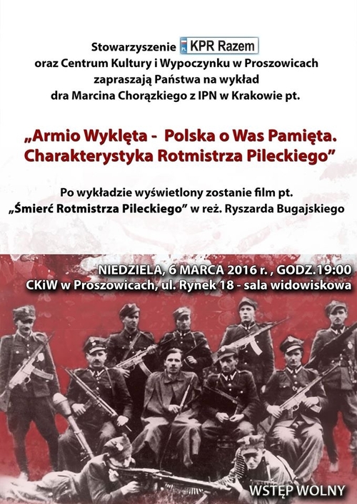 06/03/2016Wykład dr. Marcina Chorązkiego „Armio Wyklęta – Polska o Was pamięta. Charakterystyka rotmistrza Pileckiego” – Proszowice, 6 marca 2016
