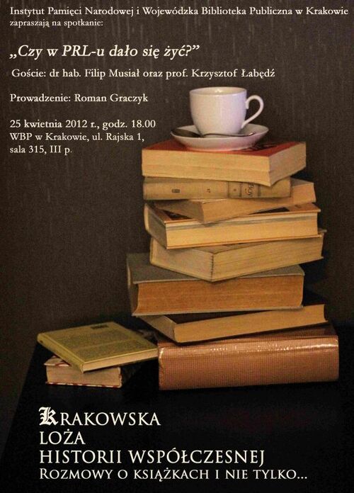 25/04/2012Spotkanie z cyklu „Krakowska Loża Historii Współczesnej. Rozmowy o książkach i nie tylko…” – „Czy w PRL-u dało się żyć?” – Kraków, 25 kwietnia 2012