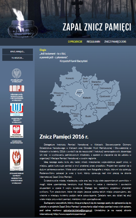 06/04/2017Uruchomiono nową stronę internetową „Zapal Znicz Pamięci” – katalog miejsc pamięci województwa świętokrzyskiego