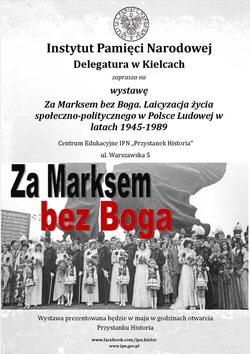04/05/2018Wystawa „Za Marksem bez Boga. Laicyzacja życia społecznego w Polsce Ludowej w latach 1945-1989”. Przystanek Historia IPN – Kielce, maj