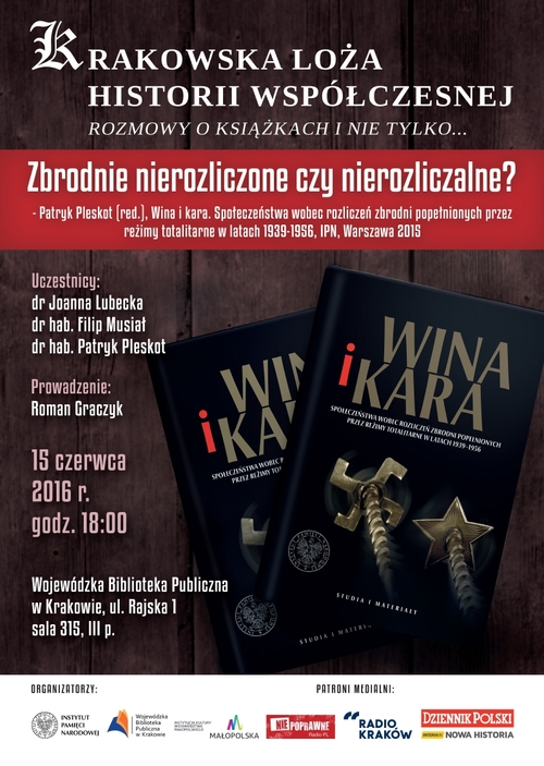 15/06/2016„Zbrodnie nierozliczone czy nierozliczalne?” spotkanie z cyklu „Krakowska Loża Historii Współczesnej” – Kraków, 15 czerwca 2016