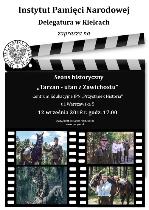 12/09/2018Seans historyczny „Tarzan – ułan z Zawichostu” w reż. Sławomira Mazura – Kielce, 12 września