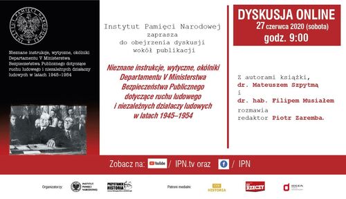 27/06/2020Zapowiedź„Nieznane instrukcje, wytyczne, okólniki Departamentu V Ministerstwa Bezpieczeństwa Publicznego dotyczące ruchu ludowego i niezależnych działaczy ludowych w latach 1945-1954”. Dyskusja on-line – 27 czerwca 2020