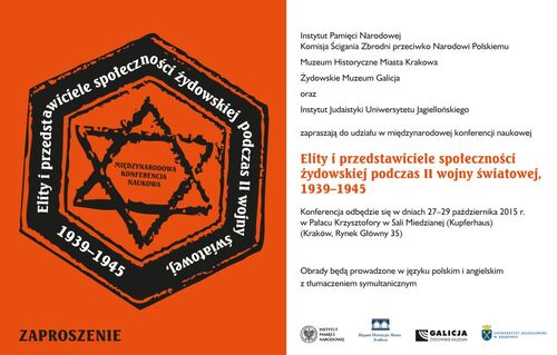 27/10/2015Międzynarodowa konferencja naukowa „Elity i przedstawiciele społeczności żydowskiej podczas II wojny światowej (1939–1945)” – Kraków, 27–29 października 2015