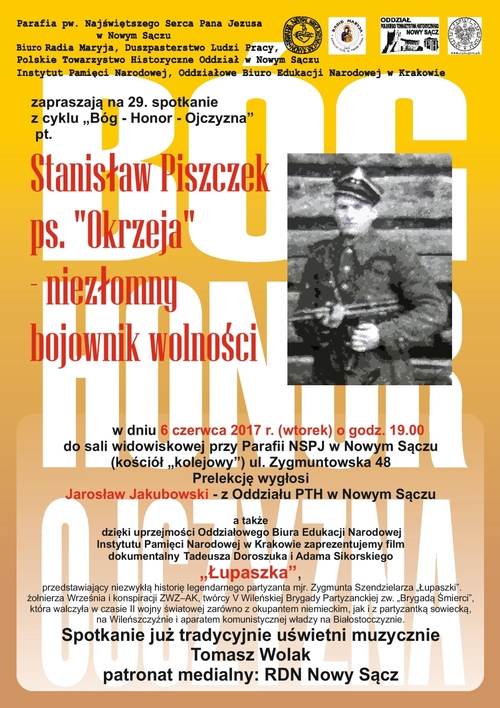 06/06/201729. spotkanie z cyklu “Bóg - Honor - Ojczyzna” pt. Stanisław Piszczek ps. “Okrzeja” - niezłomny bojownik wolności - Nowy Sącz, 6 czerwca 2017