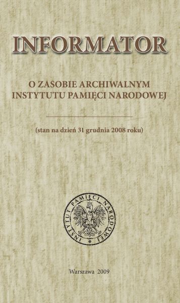 Informator o zasobie archiwalnym Instytutu Pamięci Narodowej (stan na dzień 31 grudnia 2008 roku)