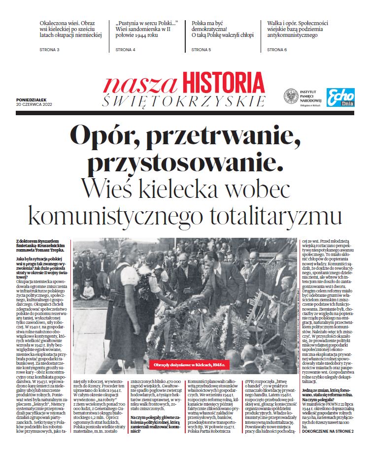 Wydawnictwo Delegatury IPN w Kielcach dotyczące wsi kieleckiej wobec komunistycznego totalitaryzmu, dodatek do „Echa Dnia” z 20 czerwca 2022.