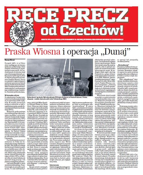 Ręce precz od Czechów! Dodatek prasowy IPN w Krakowie na 50. rocznicę interwencji wojskowej Układu Warszawskiego w Czechosłowacji [PDF]