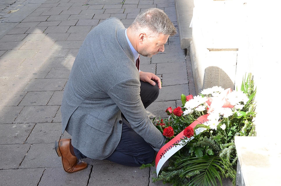 Przedstawiciele IPN – naczelnik oddziałowego archiwum Rafał Dyrcz, jego zastępca Jacek Kwilosz i Sławomir Chmura – złożyli także kwiaty pod tablicą pamięci prezesa Instytutu Janusza Kurtyki, umieszczoną na budynku archiwum krakowskiego oddziału w Wieliczce. W czasach studenckich Janusz Kurtyka był działaczem NZS.