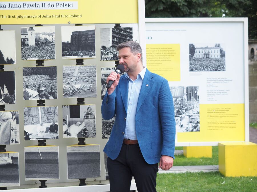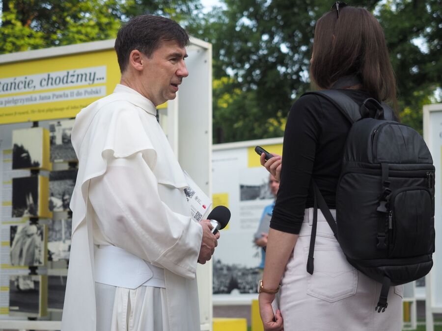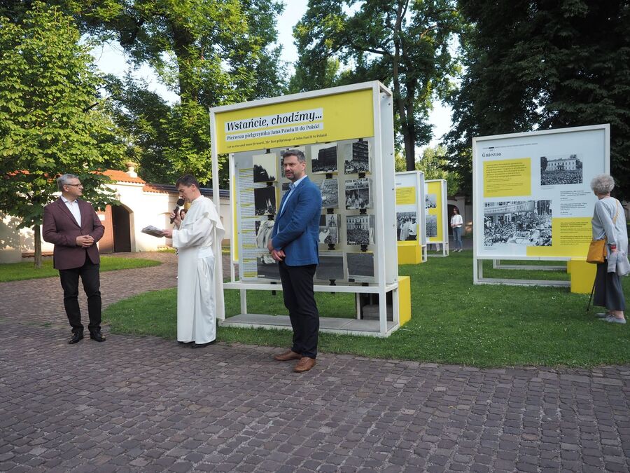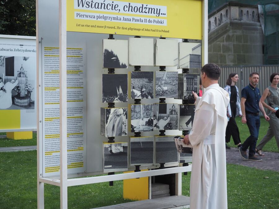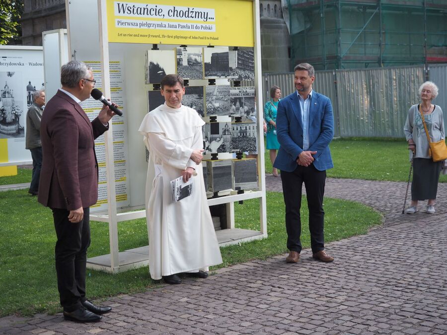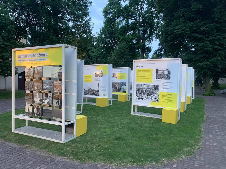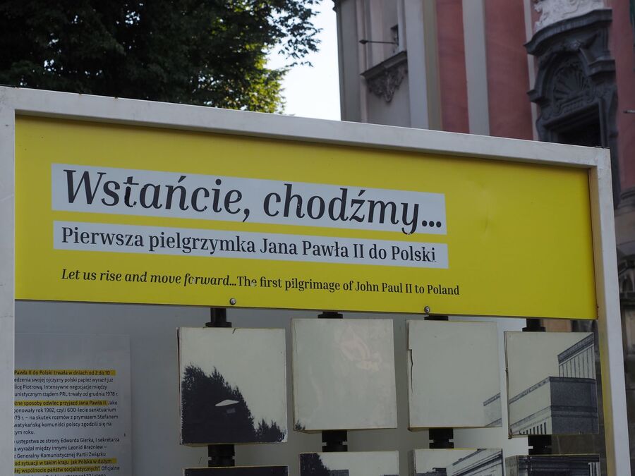 Ekspozycja pt. „Wstańcie, chodźmy…”, została przygotowana z okazji 40. rocznicy pierwszej pielgrzymki papieża Jana Pawła II do Polski (1979-2019) przez oddział Instytutu Pamięci Narodowej w Katowicach.