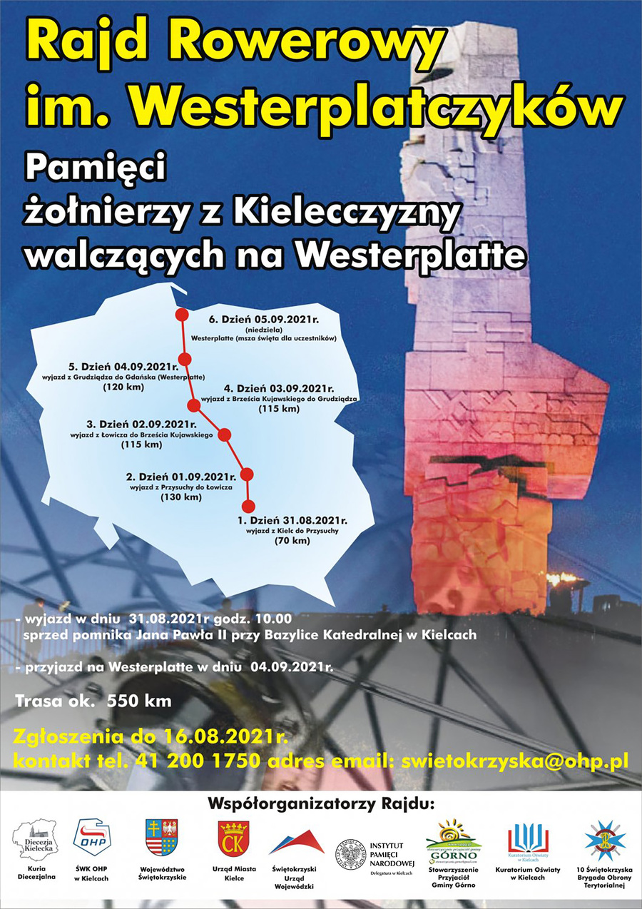 31 sierpnia 2021 r. rowerzyści wyruszyli z Kielc na Westerplatte, aby upamiętnić udział osiemdziesięciu żołnierzy 4. Pułku Piechoty Legionów z Kielc, którzy we wrześniu 1939 r. bronili Westerplatte. Cała trasa liczy 550 km.