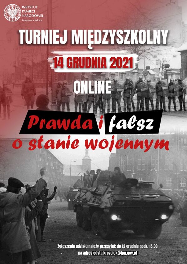 • 11.00 – otwarcie wystawy „586 dni stanu wojennego” w Centrum Edukacyjnym „Przystanek Historia” IPN w Kielcach oraz prelekcje: „Stan wojenny 1981-1983 r. Czas represji, walki i oporu” (dr Ryszard Śmietanka-Kruszelnicki) i „Stan wojenny w regionie świętokrzyskim – wybrane zagadnienia” (dr Marzena Grosicka).