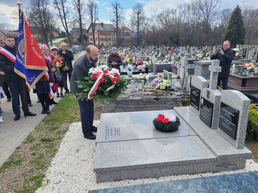 Zastępca dyrektora Oddziału IPN w Krakowie dr Michał Wenklar przedstawił okoliczności śmierci braci, którzy zginęli podczas II wojny światowej z rąk dwóch okupantów: niemieckiego i sowieckiego. Na ręce Barbary Guzińskiej, dyrektor Zespołu Szkół Oświatowych im. Jana Długosza przekazano akt opieki nad grobem. Uroczystość związana była z obchodami Dnia Pamięci Ofiar Zbrodni Katyńskiej. Nagrobek został sfinansowany przez IPN.