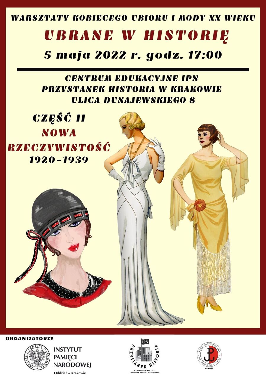 Drugie warsztaty z cyklu „Ubrane w historię”, tym razem zatytułowane „Nowa rzeczywistość”, odbędą się 5 maja 2022 r. Zapraszamy na „Przystanek Historia” IPN w Krakowie (ul. Dunajewskiego 8), początek o godz. 17. Zajęcia są bezpłatne i nie obowiązują zapisy. Prelekcję wraz z częścią warsztatową poprowadzi Oskar Broda.