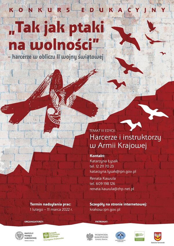 17 maja 2022 r. na „Przystanku Historia” IPN w Krakowie podsumowaliśmy III edycję konkursu edukacyjnego „Tak jak ptaki na wolności – harcerze w obliczu II wojny światowej”. W gali wzięli udział laureaci oraz osoby wyróżnione. Tegoroczna edycja projektu nawiązywała do 80. rocznicy przekształcenia ZWZ w AK i była poświęcona harcerzom oraz instruktorom w Armii Krajowej.