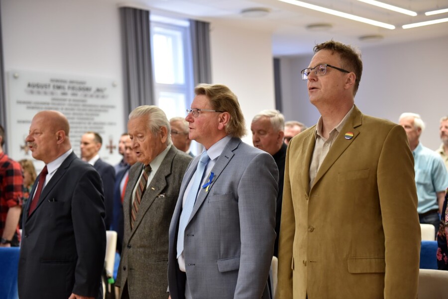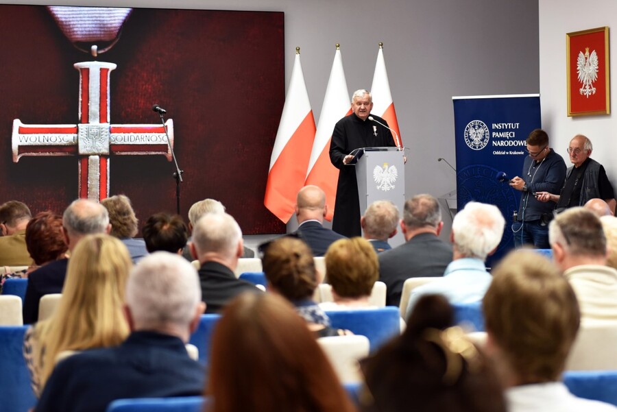 W imieniu odznaczonych wygłosił przemówienie ks. Kazimierz Wójciak, który od początku stycznia 1982 do sierpnia 1982 r. był duchowym opiekunem internowanych w więzieniu w Łowiczu ponad 240 działaczy „Solidarności”, KSS KOR, ROPCiO, KPN, NZS i innych wolnościowych organizacji antykomunistycznych. A dziś pełni posługę jako proboszcz Parafii w Oczakowie, w obwodzie mikołajowskim Ukrainy. Opowiedział zebranym o historii swojej działalności, kończąc na współczesnych wydarzeniach, których jest świadkiem, będąc w miejscu najcięższych ataków Rosjan.