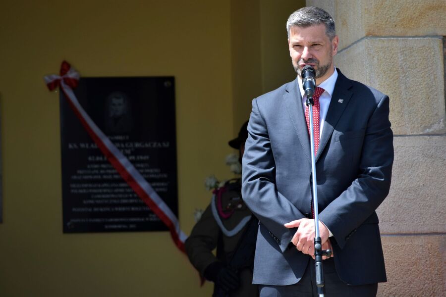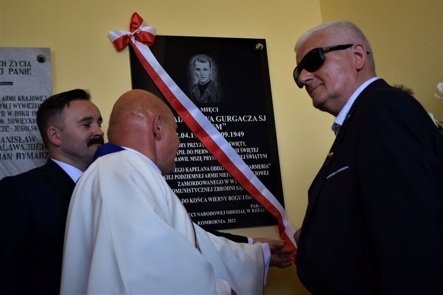 Odsłonięcie tablicy pamiątkowej poświęconej ks. Władysławowi Gurgaczowi SJ ps. „Sem”. Fot. Monika Wojtyca (IPN) -