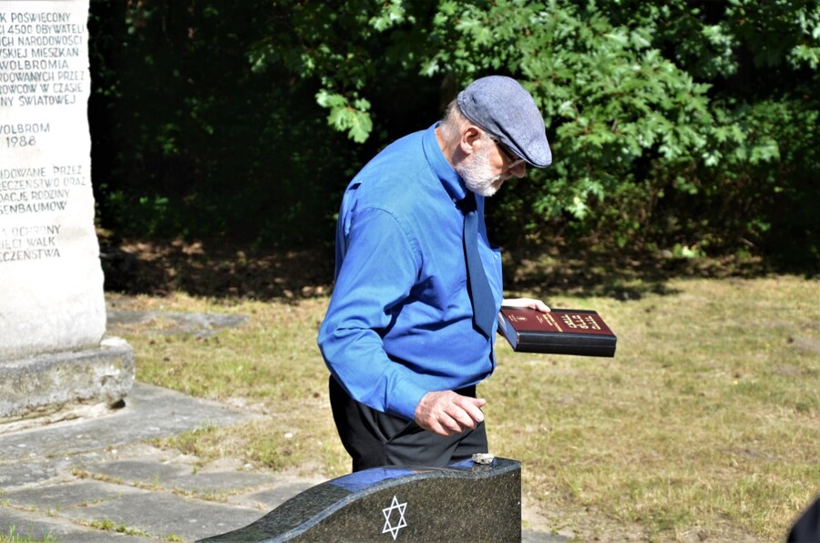 Pod pomnikiem zamordowanych żydowskich mieszkańców Wolbromia na cmentarzu żydowskim, złożono wieńce oraz wysłuchano przemówienia i modlitwy Pawła Grabca reprezentującego Gminę Wyznaniową Żydowską w Katowicach, który podziękował za liczne przybycie na wydarzenie i pielęgnowanie pamięci o zamordowanych mieszkańcach.