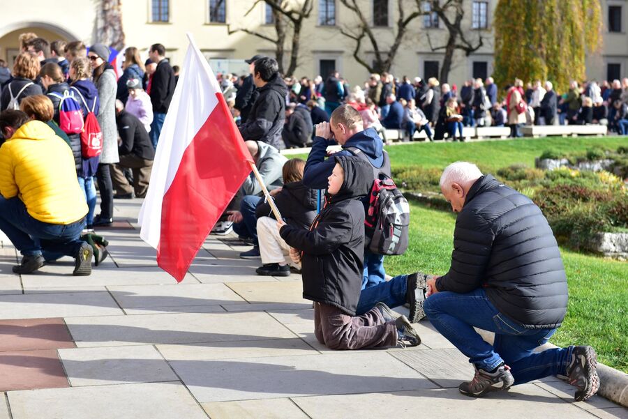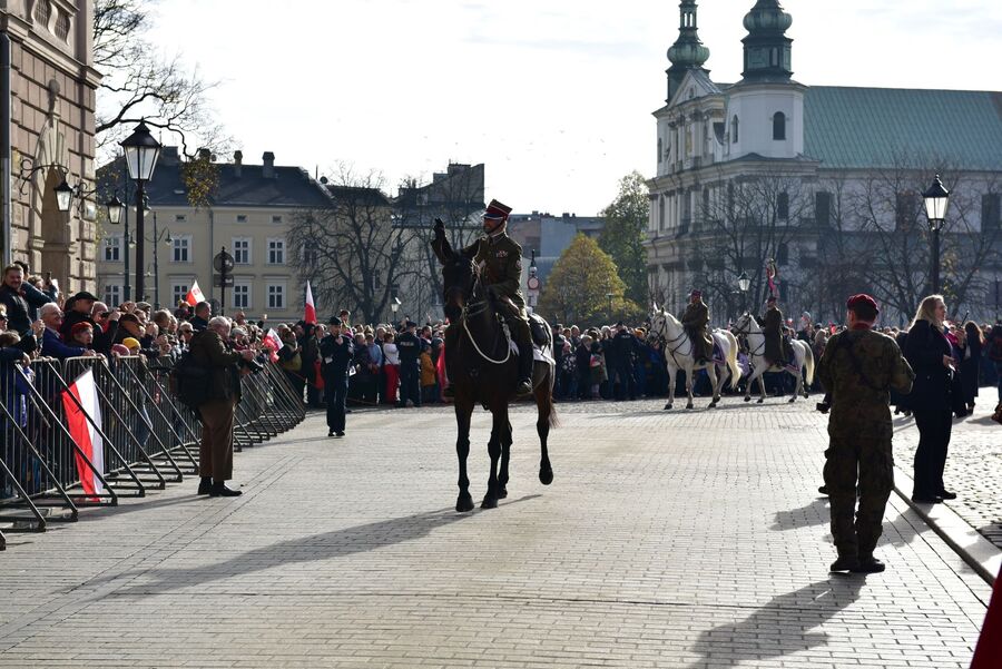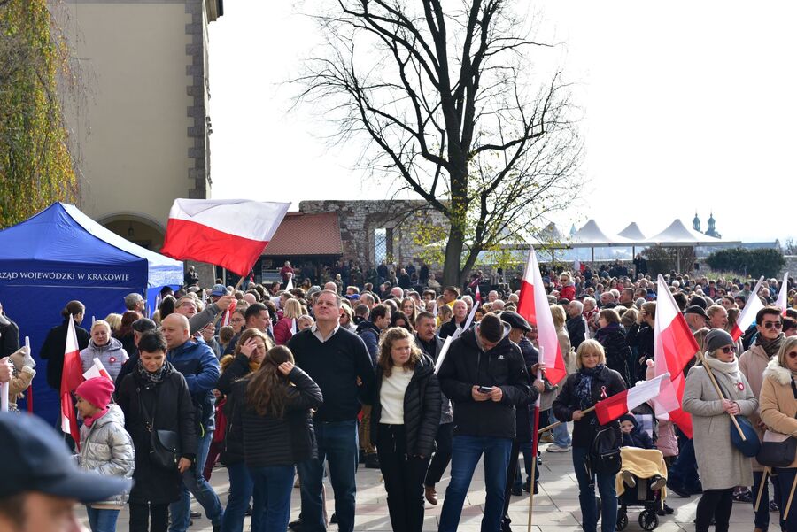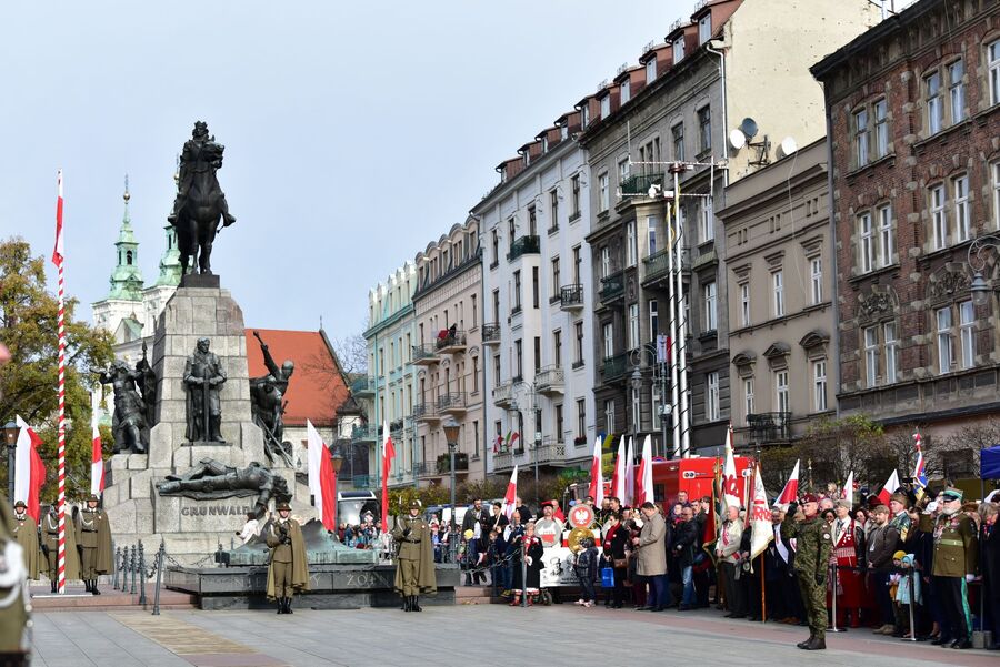 Po mszy świętej w intencji ojczyzny, odprawionej w katedrze wawelskiej przez metropolitę krakowskiego abp. Marka Jędraszewskiego, rozdano setki biało-czerwonych flag i zebrani przeszli pod Krzyż Katyński na pl. o. Studzińskiego, gdzie delegacje złożyły kwiaty. Potem uroczystości przeniosły się przed Grób Nieznanego Żołnierza na pl. Matejki. Odczytano Apel Pamięci zwieńczony salwą honorową. Wojewoda malopolski wręczył odznaczenia państwowe i akty nadania obywatelstwa polskiego.