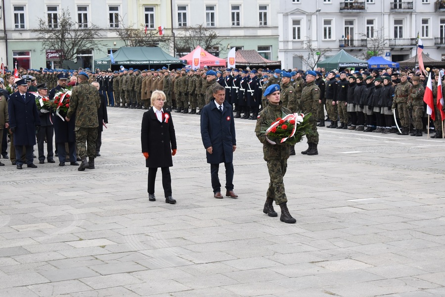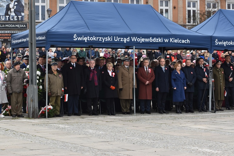W uroczystościach z okazji Narodowego Święta Niepodległości uczestniczyły władze regionu oraz przedstawiciele władz państwowych, a także policji, wojska, państwowej straży pożarnej, nadleśnictwa i poczty sztandarowe. Delegaturę IPN w Kielcach reprezentowali naczelnik dr Dorota Koczwańska-Kalita i Leszek Bukowski.