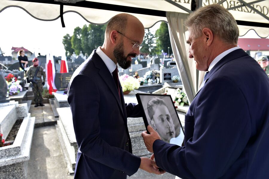 Po zakończeniu mszy św. odprowadzono szczątki żołnierza na cmentarz parafialny. Na koniec uroczystości dr Michał Wenklar przekazał na ręce rodziny portret Wincentego Cebuli.
