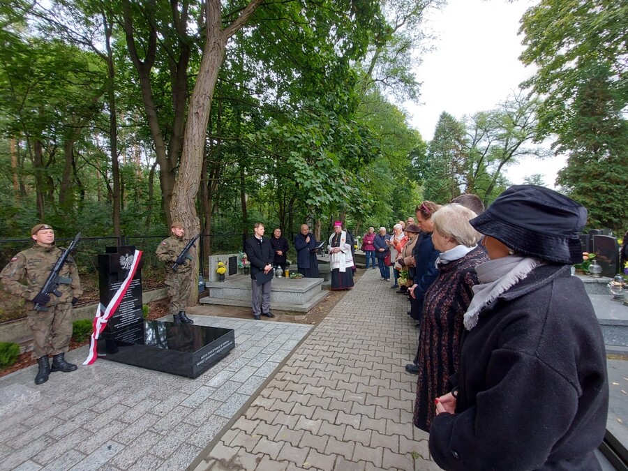 Odsłonięcie i poświęcenie nowego nagrobka w miejscu pochówku ofiar niemieckiego bombardowania z 4 września 1939 r w Krakowie