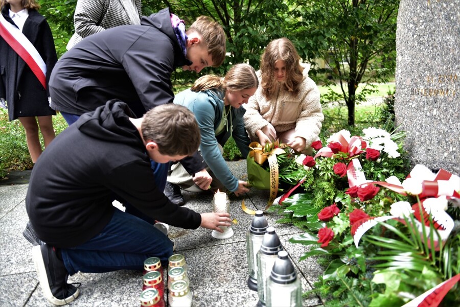 Następnie złożono kwiaty pod pomnikiem przy parku Młynówka Królewska na wysokości przedszkola samorządowego, które poprzedzoiło okolicznościowe przemówienie dr. Wenklara.