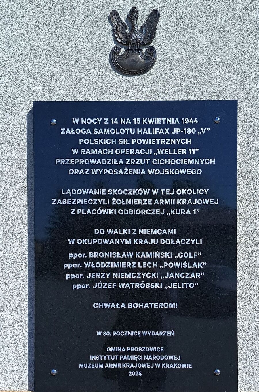 6 maja 2024 r. na budynku Ochotniczej Straży Pożarnej w Makocicach (gm. Proszowice) odsłonięto tablicę upamiętniającą zrzut czterech cichociemnych na terytorium okupowanej Polski, w nocy z 14 na 15 kwietnia 1944 r.