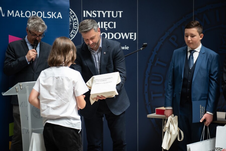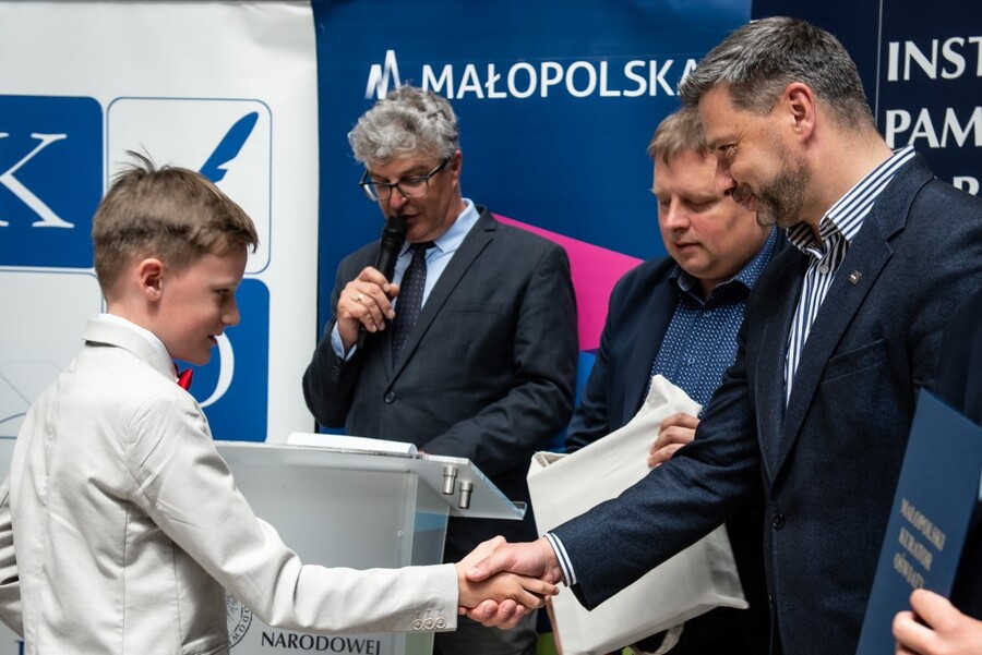 Zwycięzcom pogratulowali obecni na uroczystości przedstawiciele organizatorów: dr hab. Filip Musiał dyrektor Oddziału Instytutu Pamięci Narodowej w Krakowie, Edyta Stradomska – zastępca dyrektora Wydziału Nadzoru Pedagogicznego Kuratorium Oświaty w Krakowie, Dariusz Gawęda – zastępca dyrektora Departamentu Kultury i Dziedzictwa Narodowego Województwa Małopolskiego oraz prof. Tomasz Gąsowski reprezentujący Fundację Centrum Dokumentacji Czynu Niepodległościowego, który wygłosił również okolicznościowy wykład.