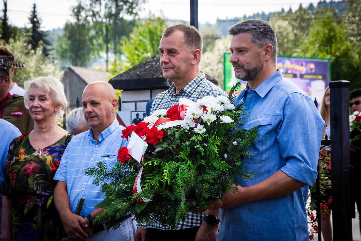 Przed mszą dr Musiał złożył kwiaty na grobie założyciela PPAN kpt. Stanisława Pióro i pod pomnikiem ks. Gurgacza na terenie Urzędu Gminy w Łabowej.