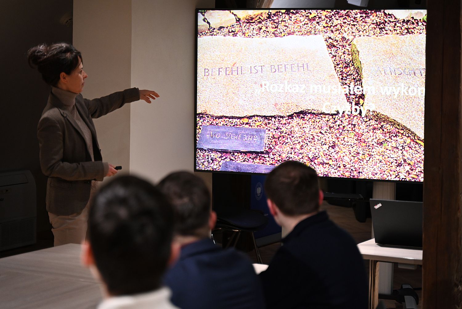 W ramach współpracy z Kołem Naukowym Historyków Studentów Uniwersytetu Jagiellońskiego oraz Studencko-Doktoranckim Kołem Naukowym „Phronesis” Uniwersytetu Papieskiego Jana Pawła II siedzibę Oddziału IPN w Krakowie po raz czwarty odwiedzili studenci historii – uczestnicy cyklu comiesięcznych seminariów. 15 stycznia 2025 r. dr hab. Joanna Lubecka poprowadziła zajęcia zatytułowane „Rozkaz musiałem wykonać. Czyżby?”