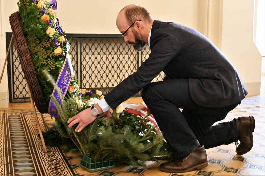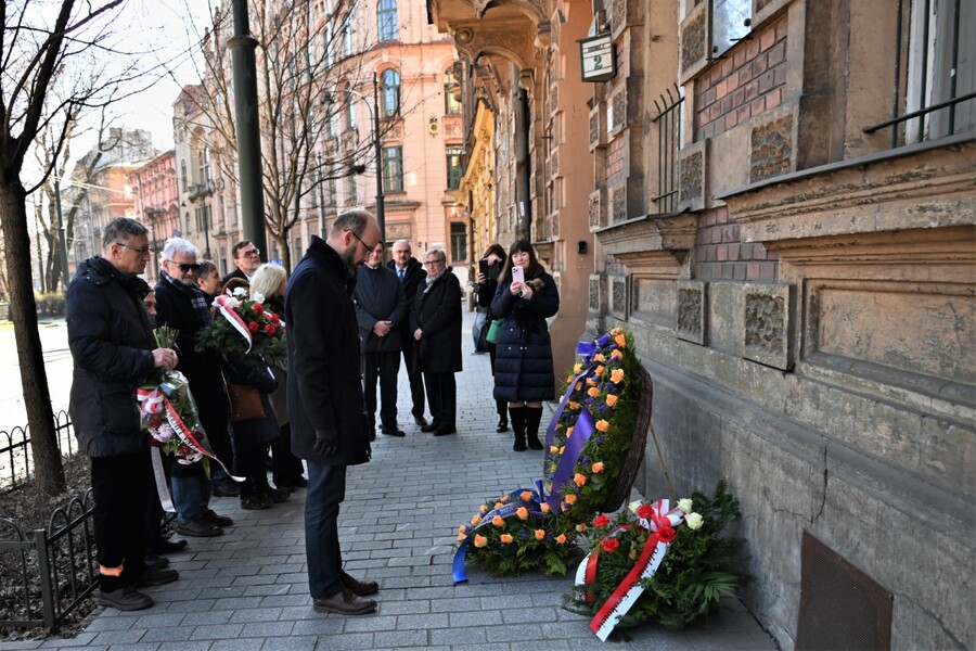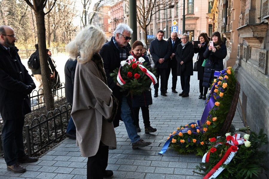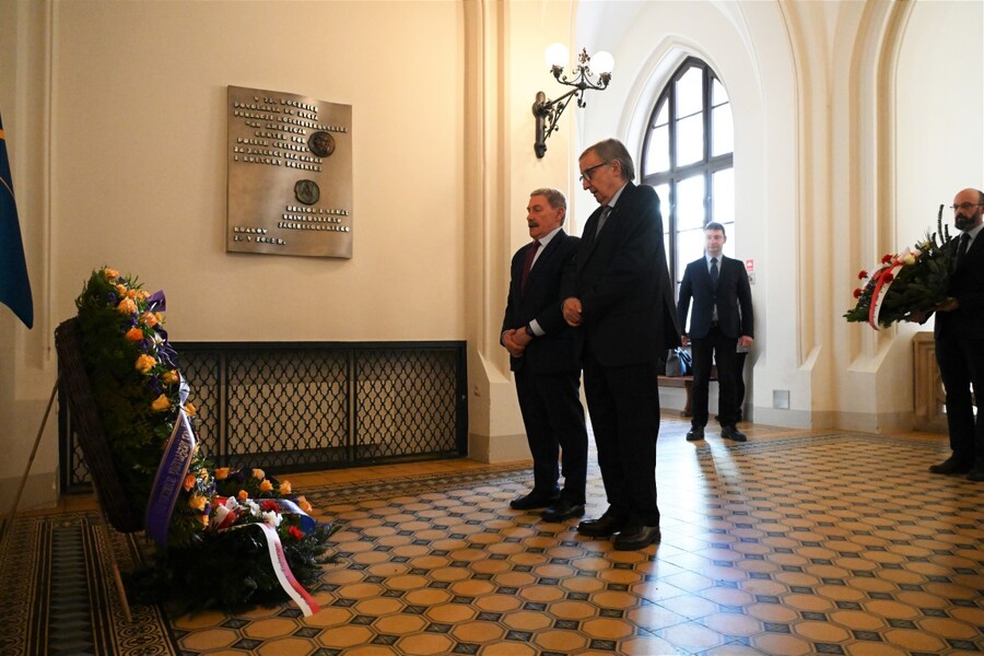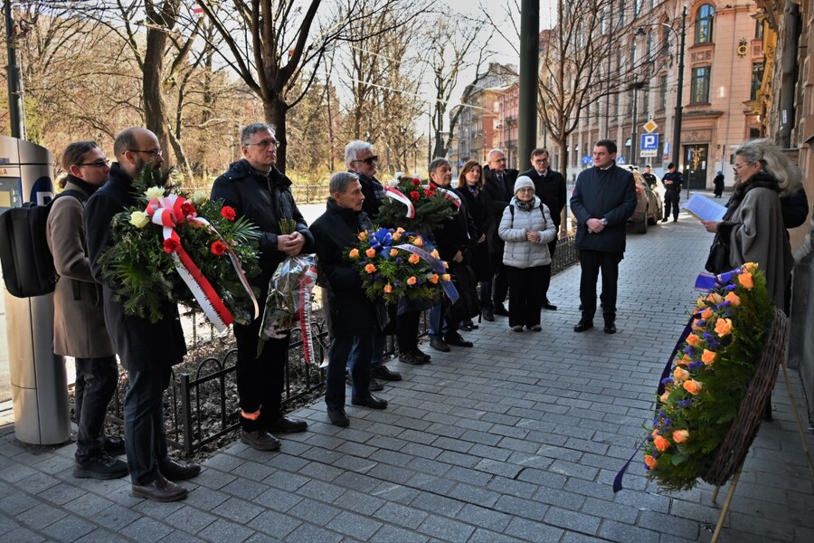 Przedstawiciele władz uczelni, Stowarzyszenia Ne Cedat Academia i Oddziału IPN w Krakowie złożyli kwiaty przy tablicach pamięci w Collegium Novum oraz na budynku przy ul. Podwale 2.