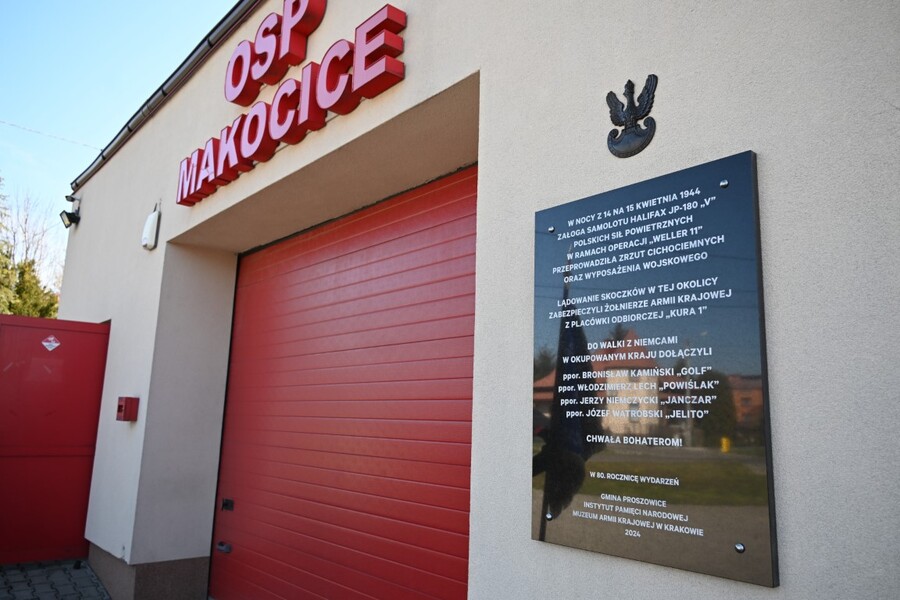 W nocy z 14 na 15 kwietnia 1944 r. załoga samolotu Halifax JP-180 „V” Polskich Sił Powietrznych, lecąca z Włoch nad okupowaną przez Niemców Polskę, wykonała udany zrzut czterech cichociemnych oraz wyposażenia wojskowego na pola Makocic i Szczytnik pod Proszowicami.