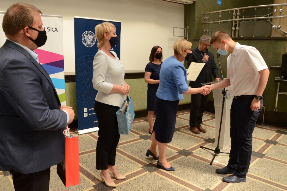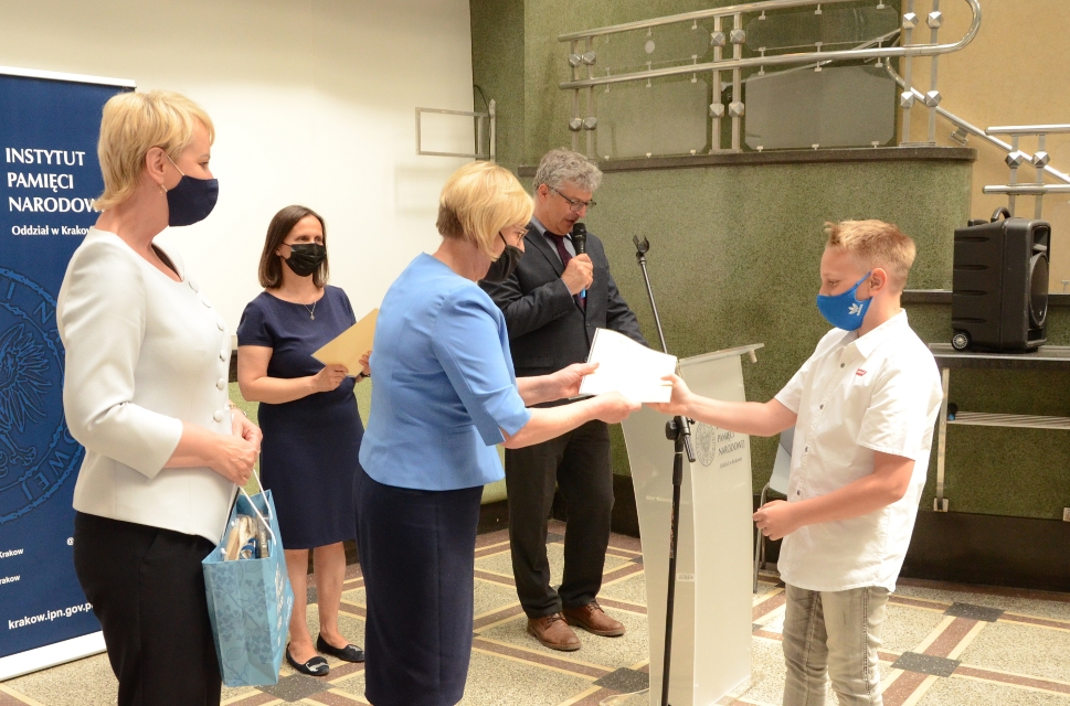 Dyplomy i nagrody wręczyli laureatom konkursu Barbara Nowak, małopolski kurator oświaty, Iwona Gibas z Zarządu Województwa Małopolskiego, Monika Gubała, dyrektor Departamentu Kultury i Dziedzictwa Narodowego Województwa Małopolskiego, prof. Tomasz Gąsowski z Fundacji Centrum Dokumentacji Czynu Niepodległościowego, dyrektor Oddziału IPN w Krakowie dr hab. Filip Musiał i naczelnik Oddziałowego Biura Edukacji Narodowej Michał Masłowski. Uroczystość poprowadził Dariusz Gorajczyk, koordynator konkursu z IPN.