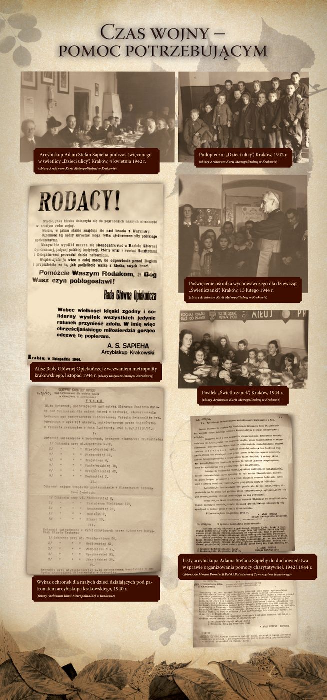 Przypominamy wystawę krakowskiego IPN „Kardynał Adam Stefan Sapieha. Człowiek, duszpasterz, mąż stanu”, którą przygotowaliśmy 10 lat temu. Zawiera ona zdjęcia i dokumenty. Przedstawione zostały różne aspekty biografii kard. Sapiehy, m.in. działalność społeczna i polityczna, aktywność duszpasterska w latach 1912-1951. Część ekspozycji ukazuje postać kardynała od strony prywatnej, w jego kontaktach z rodziną i bliskimi.