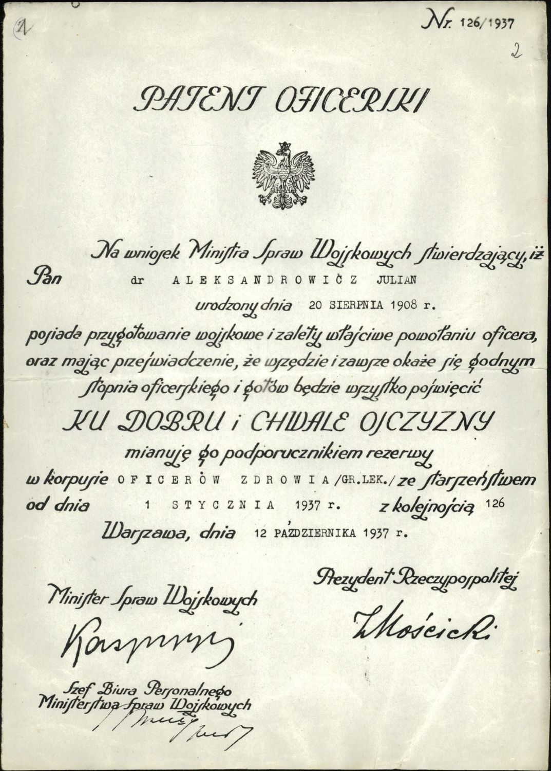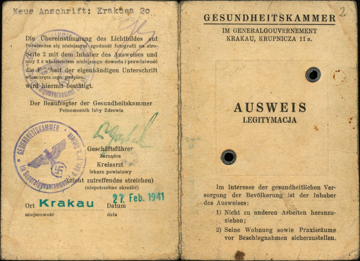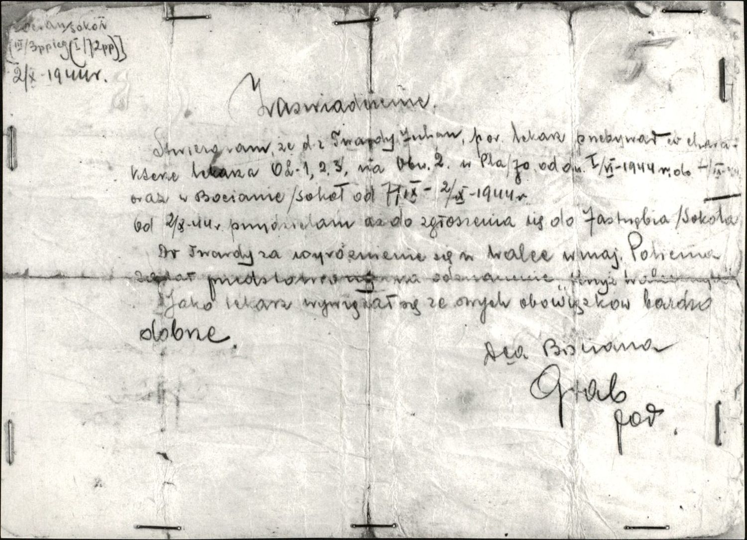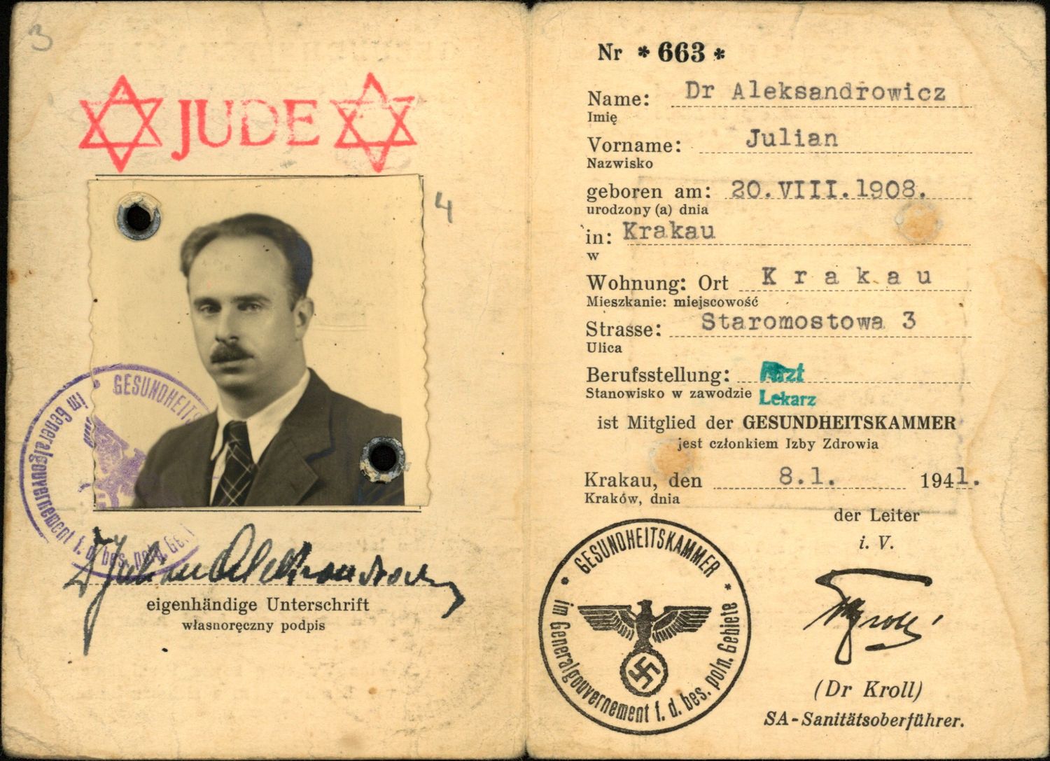 Jeden z fałszywych dokumentów Juliana Aleksandrowicza (1944). Dok. ze zbiorów IPN -