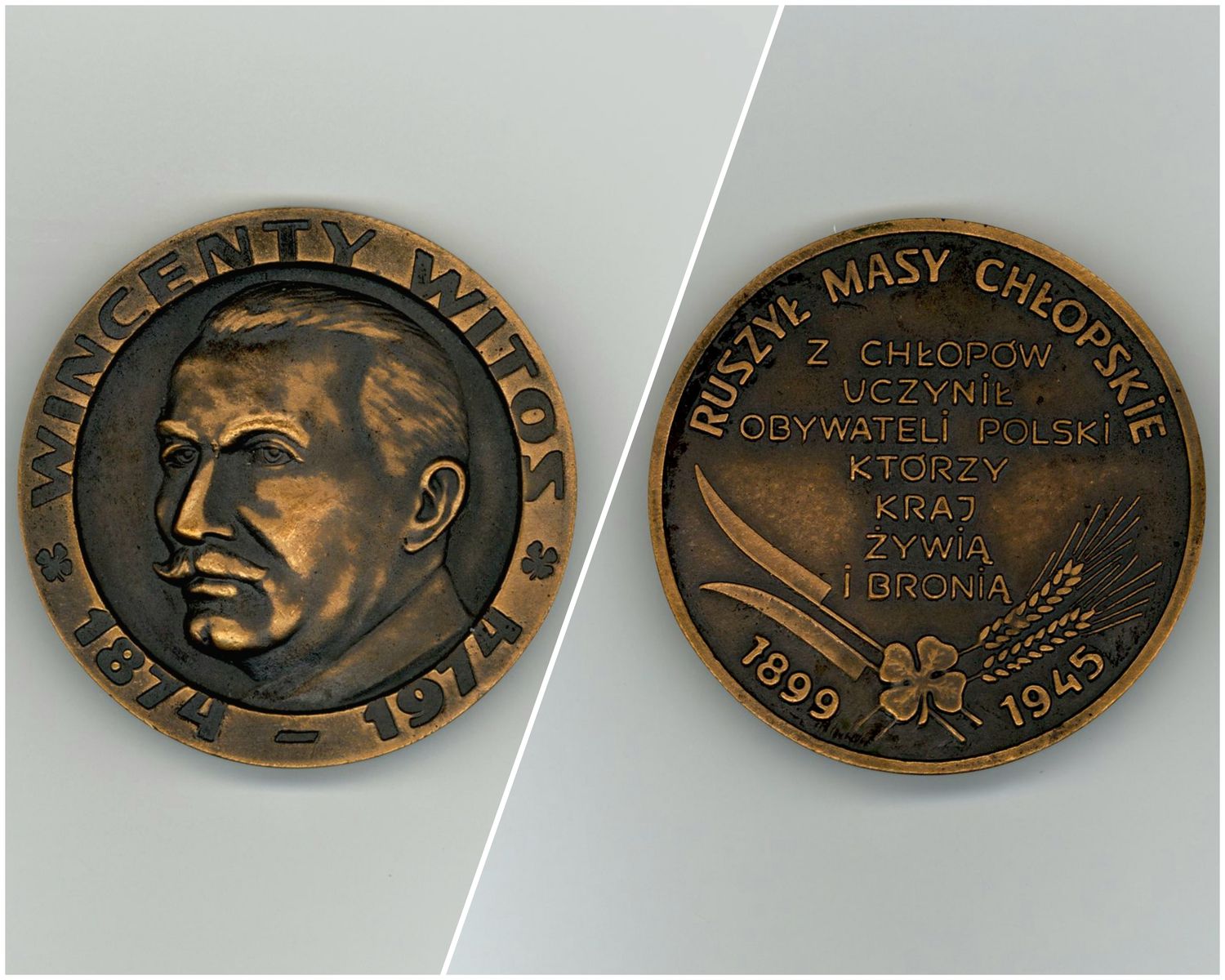 Medal wydany przez Polonijny Komitet Obchodów Setnej Rocznicy Urodzin Wincentego Witosa w Chicago Illinois z okazji 100. rocznicy urodzin Wincentego Witosa (1974 r.). Jeden z artefaktów z prywatnego archiwum Stanisława Mierzwy przekazanych przez rodzinę Mierzwów do IPN w Krakowie