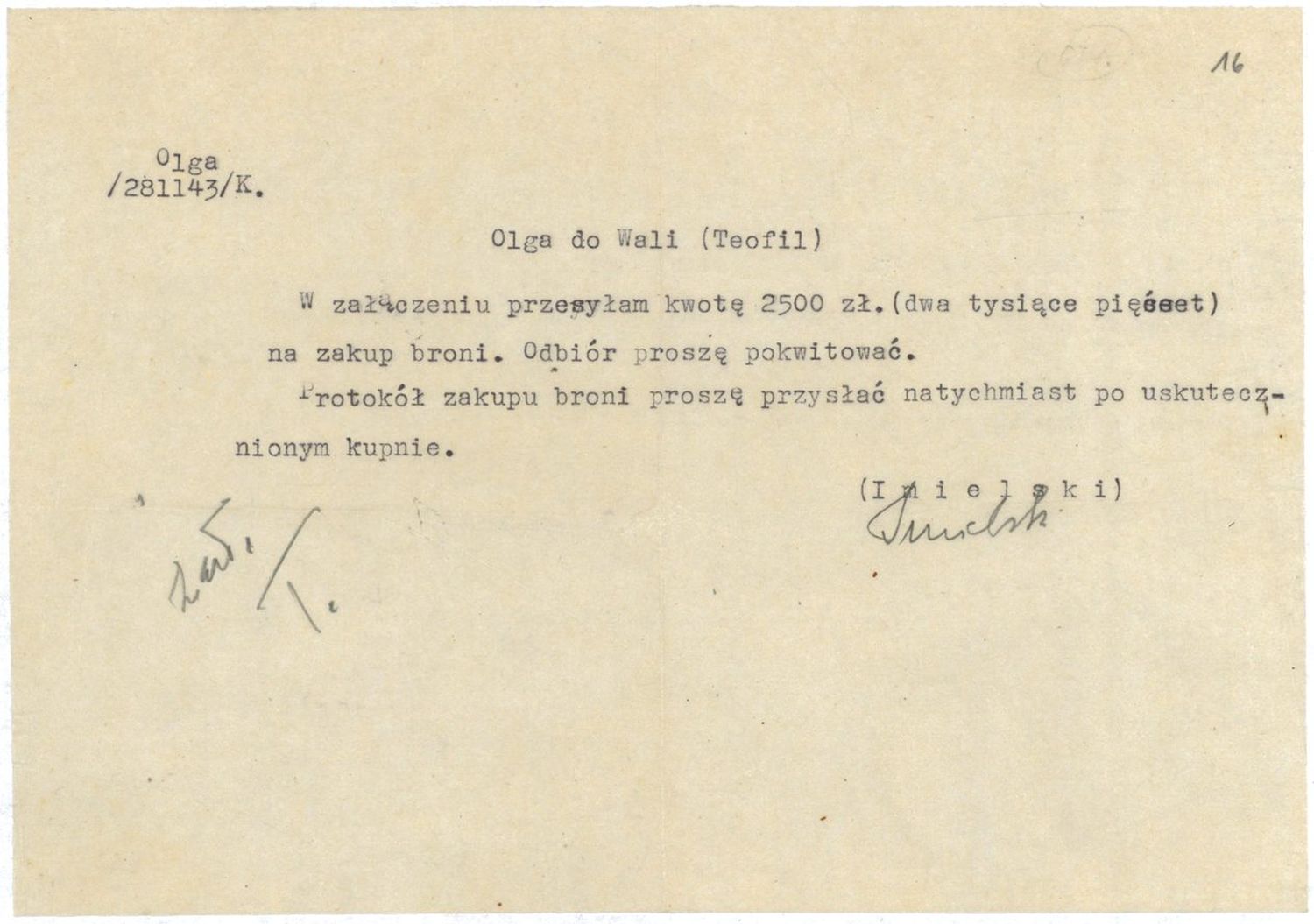 Jeden z dokumentów sztabowych 116 Pułku Piechoty AK Ziemi Olkuskiej kryptonim „Winiarnia”, przekazanych do IPN w Krakowie przez Michała i Krzysztofa Ostrowskich -